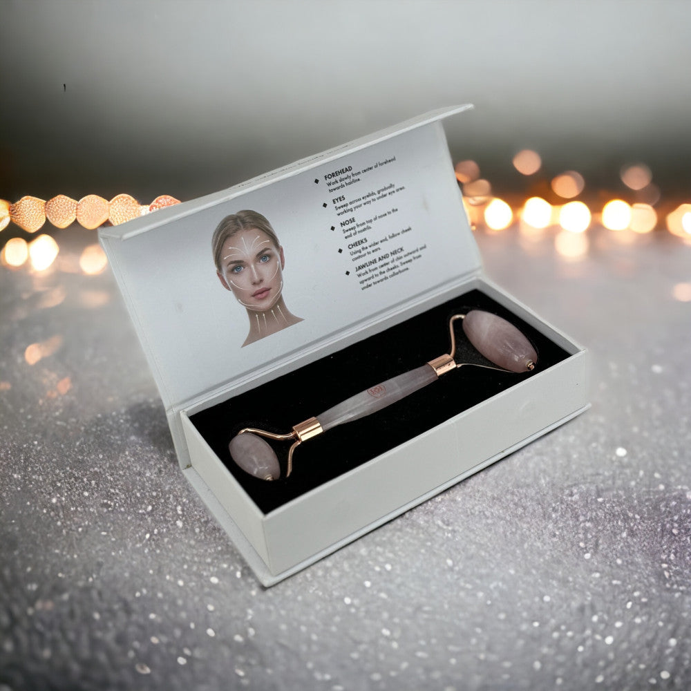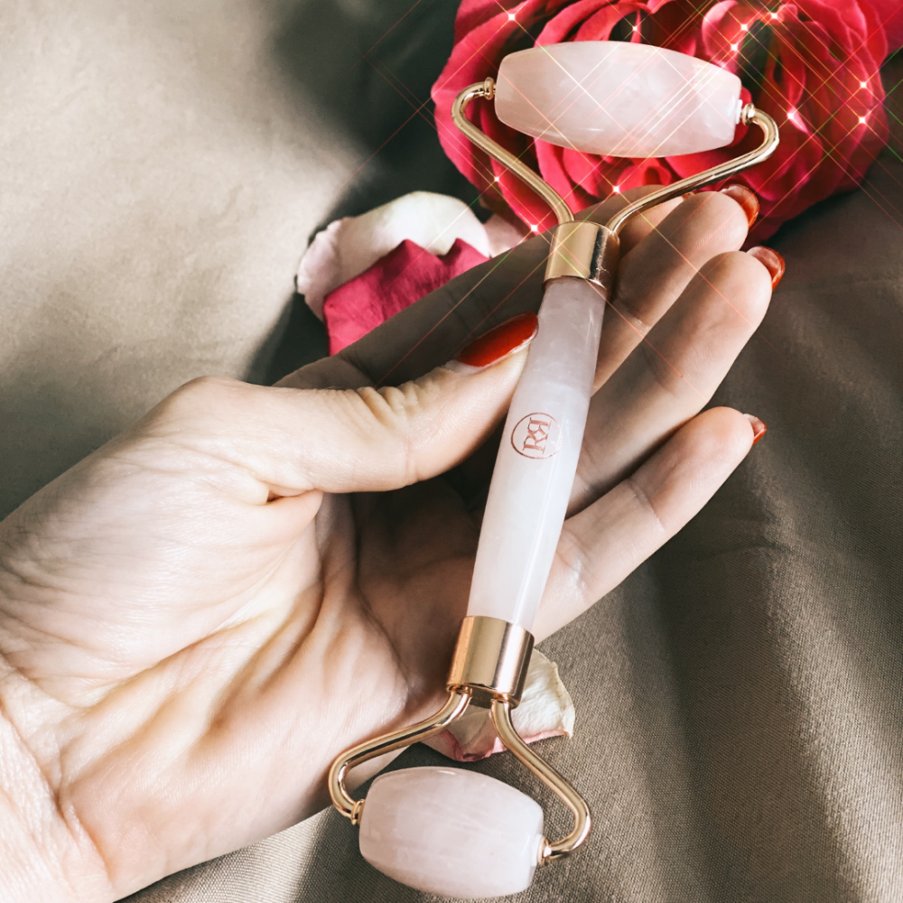 The rose quartz facial roller contains amazing skin-loving minerals that help generate collagen and elastin naturally.